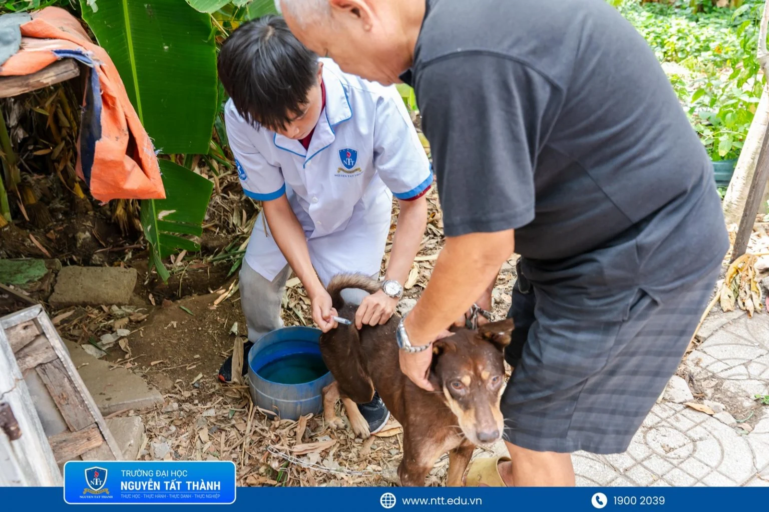 SV ngành Thú y NTTU tiêm vaccine tại các hộ dân
